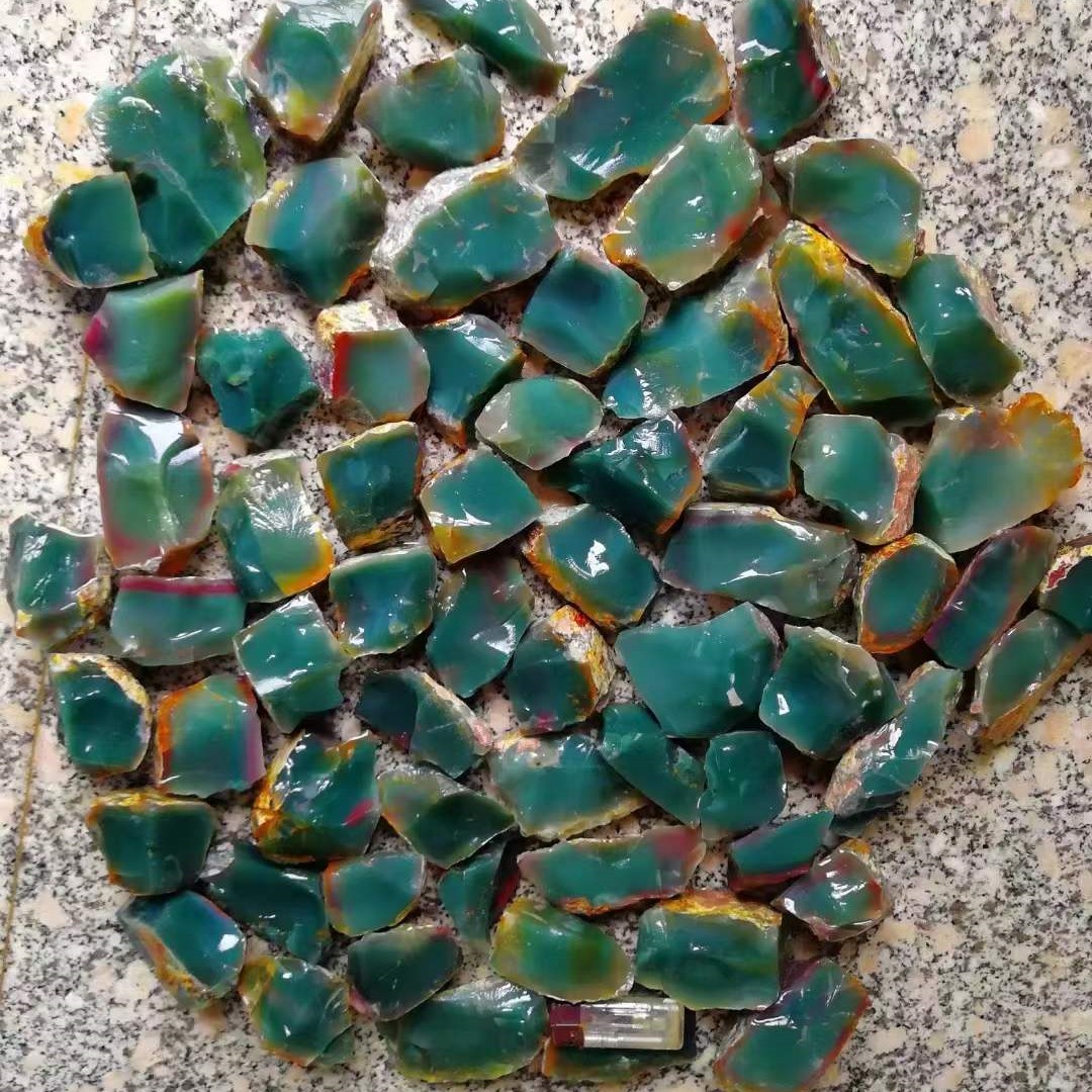 除了冰料和纯绿料外,牛槽洼也有红心绿肉、冰绿相间的双色紫绿玛瑙产出。整体而言,牛槽洼紫绿玛瑙品质中等偏上。