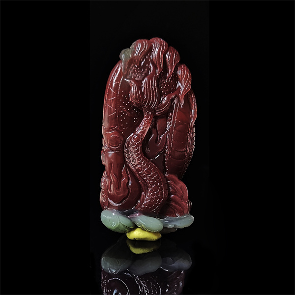 品名:紫绿玛瑙生意兴隆龙腾摆件