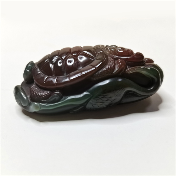 品名:紫绿玛瑙龟鹤呈祥手把件