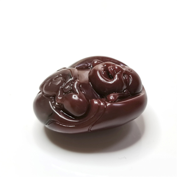 紫绿玛瑙弥勒佛如意手把件