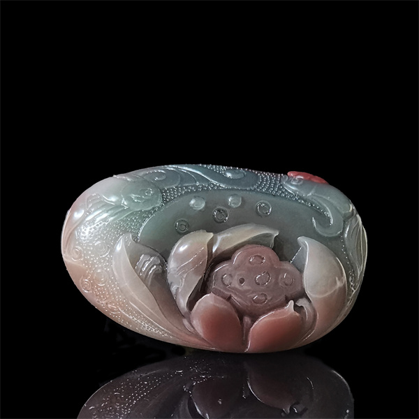 品名:紫绿玛瑙荷花鱼手把件