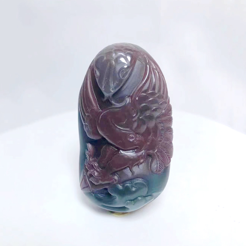 品名:紫绿玛瑙老鹰蛇手把件