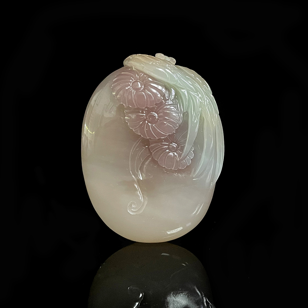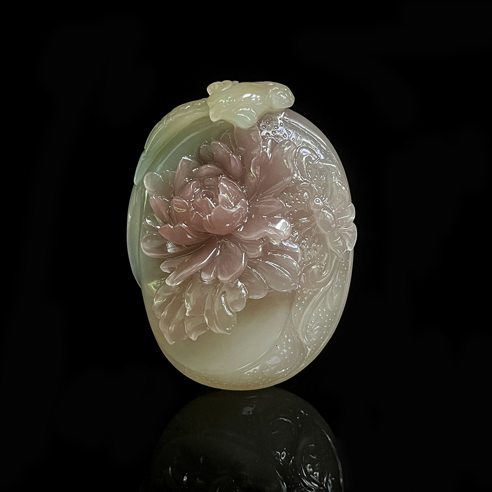 紫绿玛瑙凤凰牡丹把件